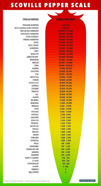 as we proceed up the scale. A Jalepeno – common in Mexican dishes is 2,500 – 8,000
